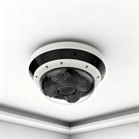 - 4 adjustable lenses in one camera cover up to 360° field of view, ensuring no blind area monitoring and the monitoring tilt angle can be adjusted